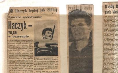 utalentowanych oszczepników i ciężarowców. Haczyk, razem ze Zbigniewem Telszewskim i Józefem Durkowskim, był założycielem LZS Iskry Banie. Grał w piłkę nożną, podnosił ciężary, ale do historii regionu przeszedł jako lekkoatleta-oszczepnik. Chociaż po raz pierwszy oszczep w dłoni trzymał w wieku 23 lat, dzięki ciężkiej pracy